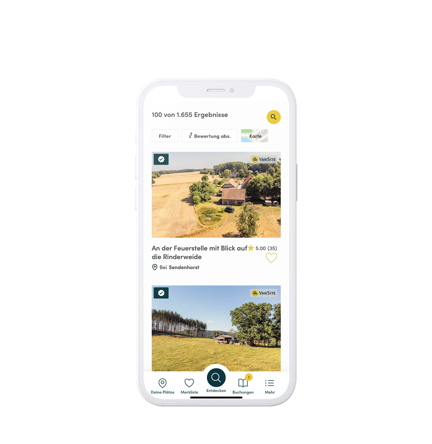 Mit der VanSite App findest du ganz einfach den Stellplatz, der genau zu dir passt. Dabei helfen dir unsere Filtermöglichkeiten und das hochwertige Bildmaterial immer, den perfekten Stellplatz zu finden.